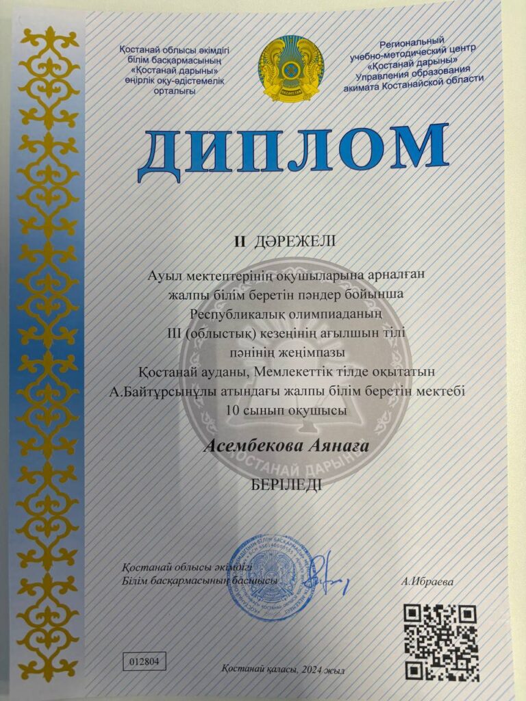 Ауыл мектептерінің оқушыларына арналған жалпы білім беретін пәндер бойынша Республикалық олимпиаданың ІІІ (облыстық) кезеңінде мектебіміздің оқушылары өте жақсы нәтиже көрсетіп, жүлделі орындарға ие болды.