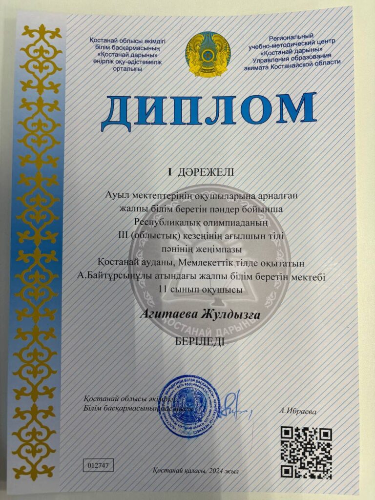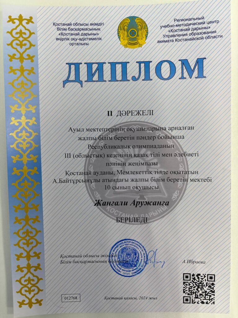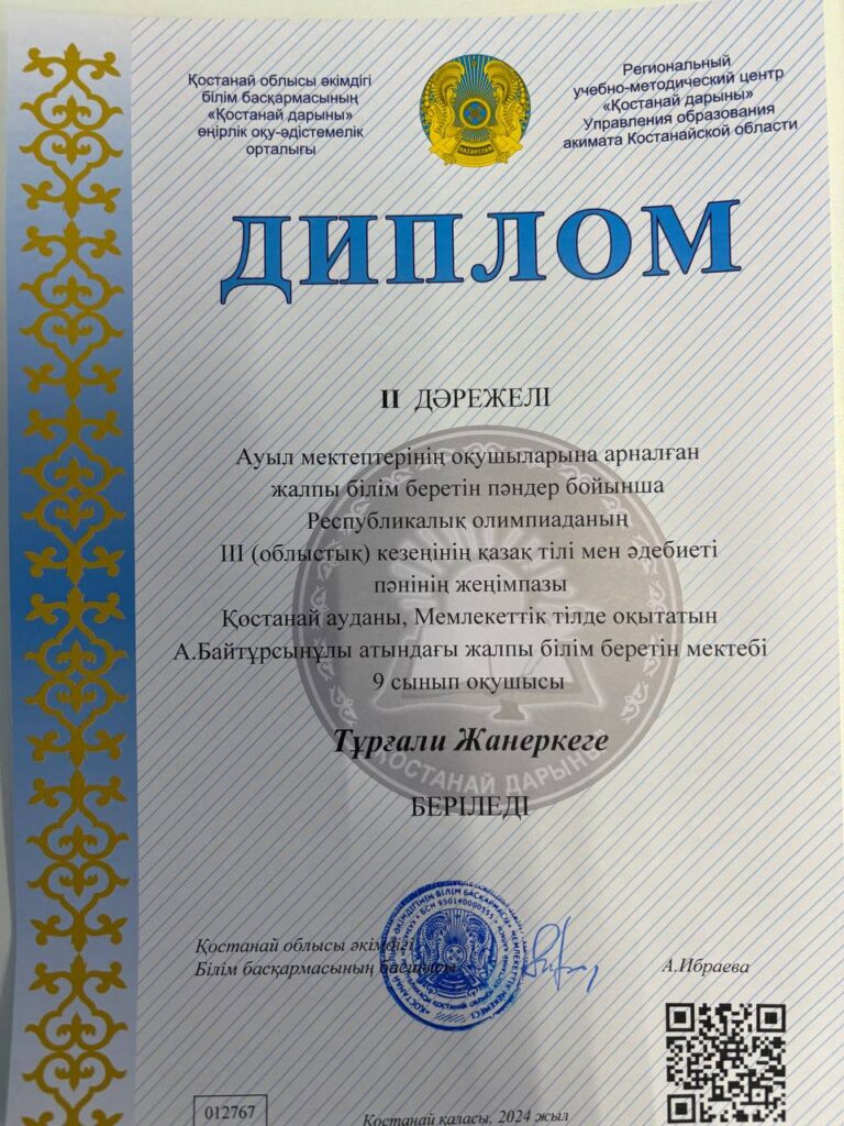 Атап айтар болсақ, Ағылшын тілі пәнінен ІІ дәрежелі диплом иегері 10-сынып оқушысы Асембекова Аяна,жетекшісі ағылшын тілі пәні мұғалімі Таскужина А.Т. Ағылшын тілі пәнінен І дәрежелі диплом иегері 11-сынып оқушысы Агитаева Жулдыз,жетекшісі ағылшын тілі пәні мұғалімі Байышова А.Н. Қазақ тілі мен әдебиеті пәнінен ІІ дәрежелі диплом иегері 10-сынып оқушысы Жанғали Аружан,жетекшісі қазақ тілі мен әдебиеті тілі пәні мұғалімі Рахимжанова Ж.М. Ағылшын тілі пәнінен І дәрежелі диплом иегері 10-сынып оқушысы Бекина Самал,жетекшісі ағылшын тілі пәні мұғалімі Таскужина А.Т. Математика пәнінен ІІ дәрежелі диплом иегері 9-сынып оқушысы Байдильдинова Дариға ,жетекшісі математика пәні мұғалімі Бекеева Д.Х. Қазақ тілі мен әдебиеті пәнінен ІІ дәрежелі диплом иегері 9-сынып оқушысы Тұрғали Жанерке,жетекшісі қазақ тілі мен әдебиеті пәні мұғалімі Садуахова Х.М. Жеңімпаз оқушыларымызды және ұстаздарымызды жеңістерімен құттықтай отырып, алдағы кезеңдерге сәттіліктер тілейміз!Ауыл мектептерінің оқушыларына арналған жалпы білім беретін пәндер бойынша Республикалық олимпиаданың ІІІ (облыстық) кезеңіндеАуыл мектептерінің оқушыларына арналған жалпы білім беретін пәндер бойынша Республикалық олимпиаданың ІІІ (облыстық) кезеңінде мектебіміздің оқушылары өте жақсы нәтиже көрсетіп, жүлделі орындарға ие болды. Атап айтар болсақ, Ағылшын тілі пәнінен ІІ дәрежелі диплом иегері 10-сынып оқушысы Асембекова Аяна,жетекшісі ағылшын тілі пәні мұғалімі Таскужина А.Т. Ағылшын тілі пәнінен І дәрежелі диплом иегері 11-сынып оқушысы Агитаева Жулдыз,жетекшісі ағылшын тілі пәні мұғалімі Байышова А.Н. Қазақ тілі мен әдебиеті пәнінен ІІ дәрежелі диплом иегері 10-сынып оқушысы Жанғали Аружан,жетекшісі қазақ тілі мен әдебиеті тілі пәні мұғалімі Рахимжанова Ж.М. Ағылшын тілі пәнінен І дәрежелі диплом иегері 10-сынып оқушысы Бекина Самал,жетекшісі ағылшын тілі пәні мұғалімі Таскужина А.Т. Математика пәнінен ІІ дәрежелі диплом иегері 9-сынып оқушысы Байдильдинова Дариға ,жетекшісі математика пәні мұғалімі Бекеева Д.Х. Қазақ тілі мен әдебиеті пәнінен ІІ дәрежелі диплом иегері 9-сынып оқушысы Тұрғали Жанерке,жетекшісі қазақ тілі мен әдебиеті пәні мұғалімі Садуахова Х.М. Жеңімпаз оқушыларымызды және ұстаздарымызды жеңістерімен құттықтай отырып, алдағы кезеңдерге сәттіліктер тілейміз!Ауыл мектептерінің оқушыларына арналған жалпы білім беретін пәндер бойынша Республикалық олимпиаданың ІІІ (облыстық) кезеңіндеАуыл мектептерінің оқушыларына арналған жалпы білім беретін пәндер бойынша Республикалық олимпиаданың ІІІ (облыстық) кезеңінде мектебіміздің оқушылары өте жақсы нәтиже көрсетіп, жүлделі орындарға ие болды. Атап айтар болсақ, Ағылшын тілі пәнінен ІІ дәрежелі диплом иегері 10-сынып оқушысы Асембекова Аяна,жетекшісі ағылшын тілі пәні мұғалімі Таскужина А.Т. Ағылшын тілі пәнінен І дәрежелі диплом иегері 11-сынып оқушысы Агитаева Жулдыз,жетекшісі ағылшын тілі пәні мұғалімі Байышова А.Н. Қазақ тілі мен әдебиеті пәнінен ІІ дәрежелі диплом иегері 10-сынып оқушысы Жанғали Аружан,жетекшісі қазақ тілі мен әдебиеті тілі пәні мұғалімі Рахимжанова Ж.М. Ағылшын тілі пәнінен І дәрежелі диплом иегері 10-сынып оқушысы Бекина Самал,жетекшісі ағылшын тілі пәні мұғалімі Таскужина А.Т. Математика пәнінен ІІ дәрежелі диплом иегері 9-сынып оқушысы Байдильдинова Дариға ,жетекшісі 